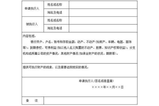 本样式根据《最高人民法院关于人民法院执行工作若干问题的规定(试行)》第28条第1款规定制定,供申请执行人提供被执行人财产状况或线索时用。
